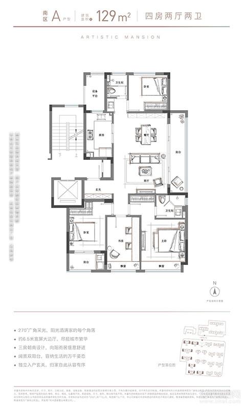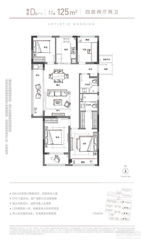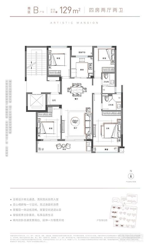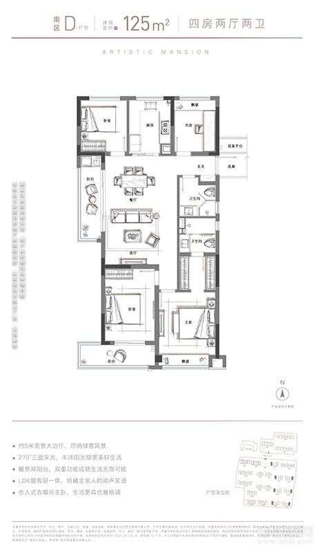 溪悦云和园 4室 2厅 2卫 面积126.38㎡