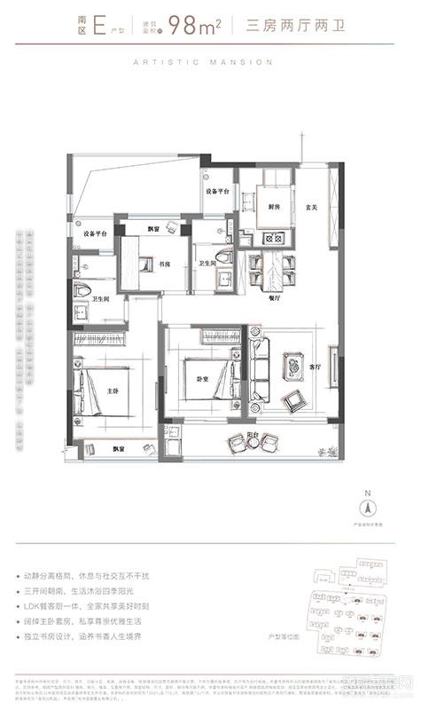 溪悦云和园 3室 2厅 2卫 面积98.67㎡