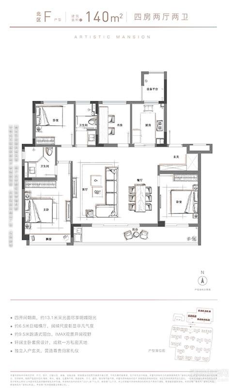 溪悦云和园 4室 2厅 2卫 面积140.94㎡