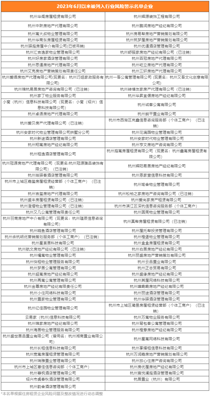 近日,杭州发布2025年第九批住房租赁企业风险名单,新增杭州韵舍酒店管理有限公司、杭居置业(杭州)有限公司等4家住房租赁企业。