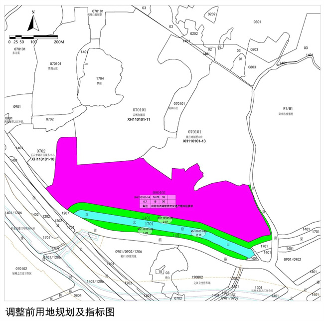 调整内容:拟对XH110101-14及周边地块布局、规划指标进行优化调整。