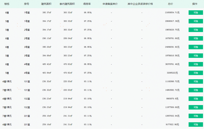 房源均价(含装修):约236-259㎡均价44860元/㎡、298-485㎡均价59828元/㎡。