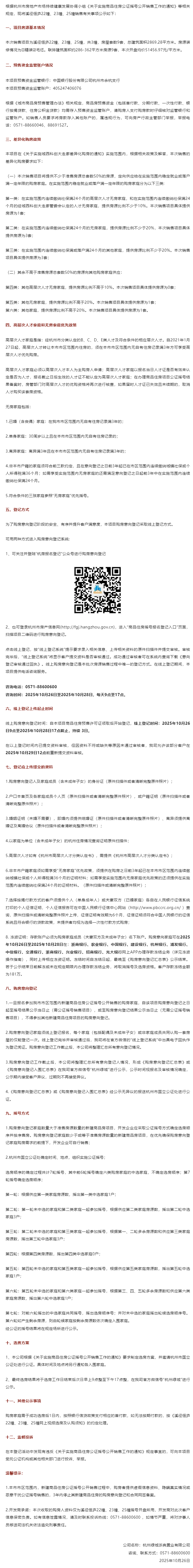 [摘要] 10月26日,溪径恒庐销售方案公示,本次销售项目为溪径恒庐22幢、23幢、25幢,共3幢,房屋套数9套。