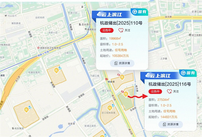 另外,今天一早,杭州市规划和自然资源局挂牌2宗宅地,将于2025年11月27日出让。