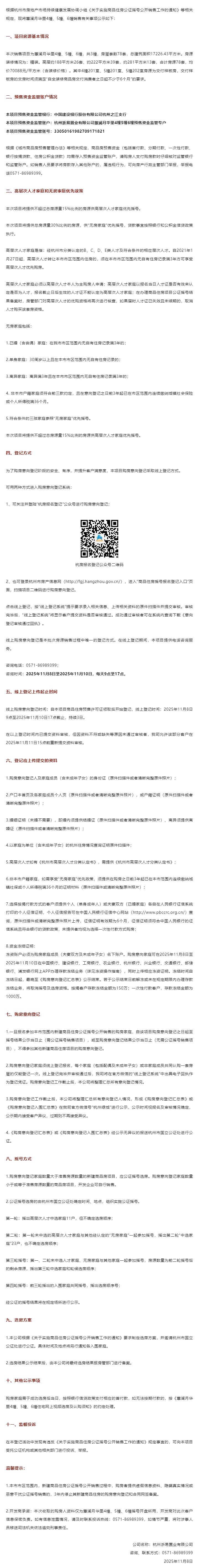 11月8日,蕙澜月华里销售方案公示,本次销售项目为蕙澜月华里4幢、5幢、6幢,共3幢,房屋套数78套。