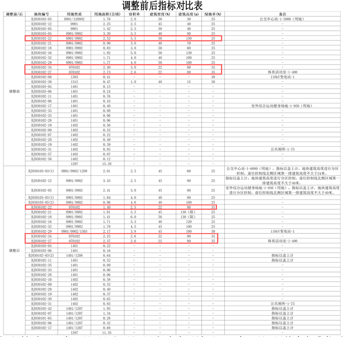 2.BJ030102-22地块用地性质由商业商务用地调整为二类城镇住宅用地;