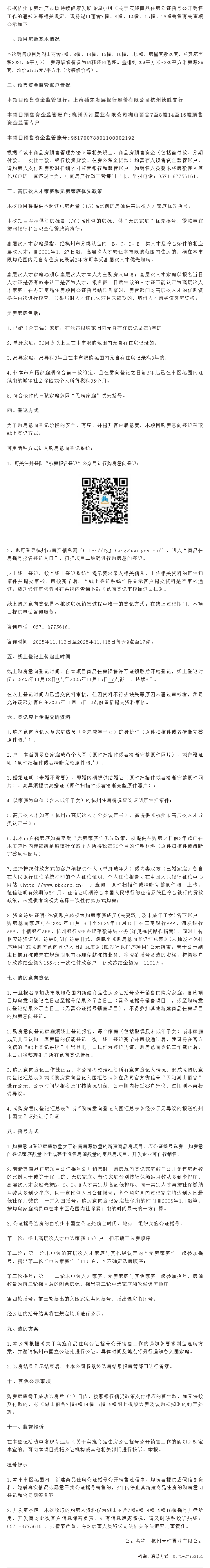11月13日,湖山丽舍销售方案公示,本次销售项目为湖山丽舍7幢、8幢、14幢、15幢、16幢,共5幢,房屋套数36套。