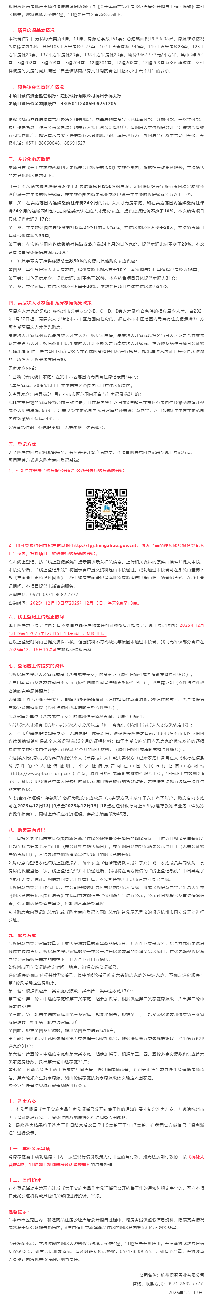 [摘要] 12月13日,杭咏天奕府销售方案公示,本次销售项目为杭咏天奕府4幢、11幢,房源总套数161套。