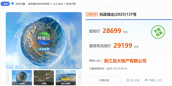 刚刚,杭州2025年最后一宗涉宅用地成功出让。