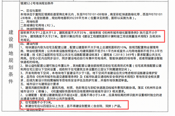 根据规划条件该地块新建住宅应以四层及以上为主,且不得建设别墅类(含合院、双拼)产品,同时该项目为全市住宅品质提升试点项目。