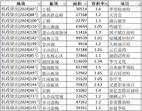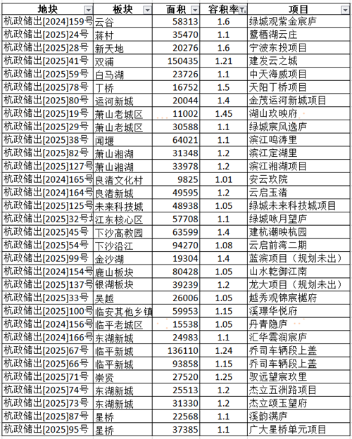 2025年杭州设宅用地成交数据(数据来源:袋鼠汇)