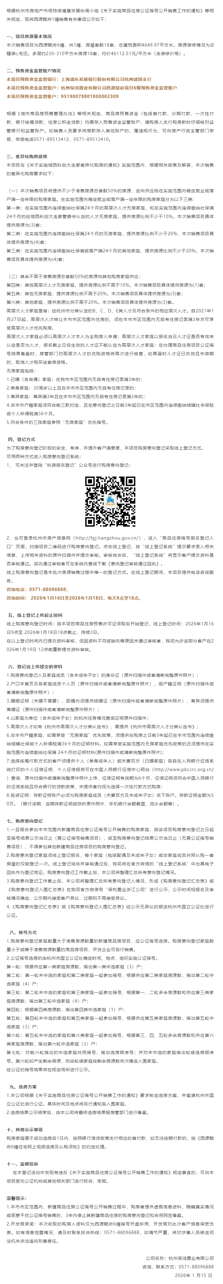 1月15日,西源赋府销售方案公示,本次销售项目为西源赋府6幢,共1幢,房屋套数18套。