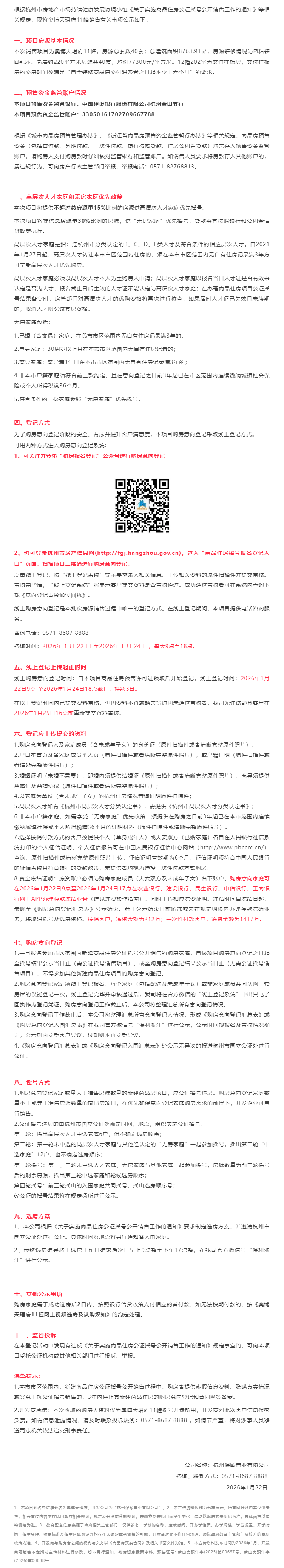 1月22日,奥博天珺府销售方案公示,本次销售项目为奥博天珺府11幢,房源总套数40套。