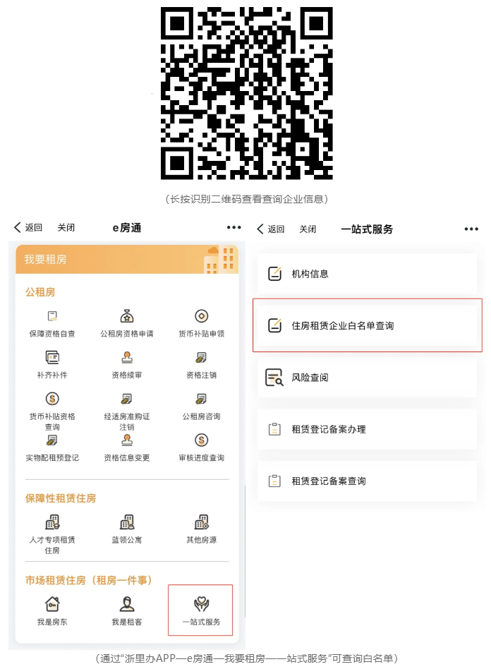 如果您有租房或者出租需求,推荐大家通过杭州市住房租赁公众服务平台查询企业信息,择优选择向信用等级好的“白名单”企业租赁房源,不要向未在平台报备的企业租房,有效防范租赁风险,维护自身合法权益。