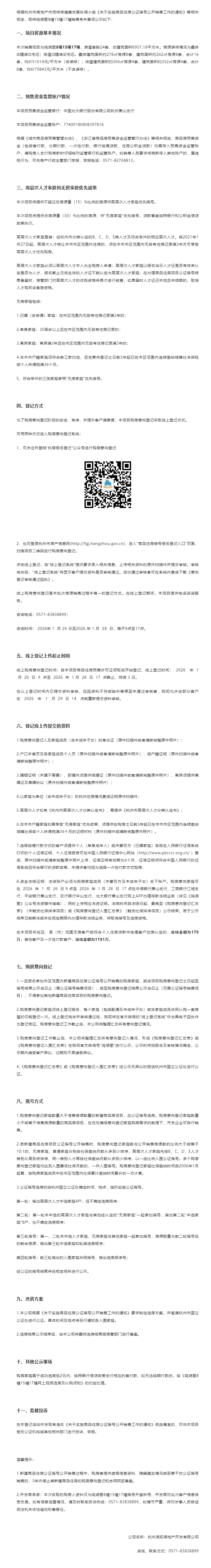1月28日,鸣湖里销售方案公示,本次销售项目为鸣湖里8幢15幢17幢,房屋套数24套。